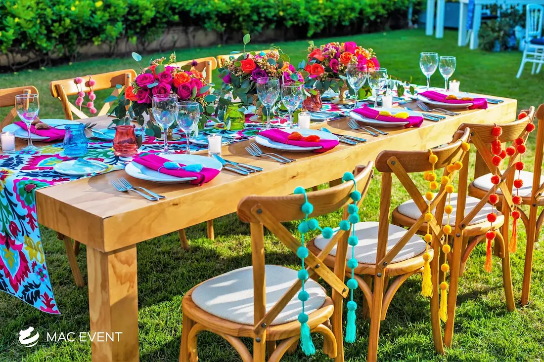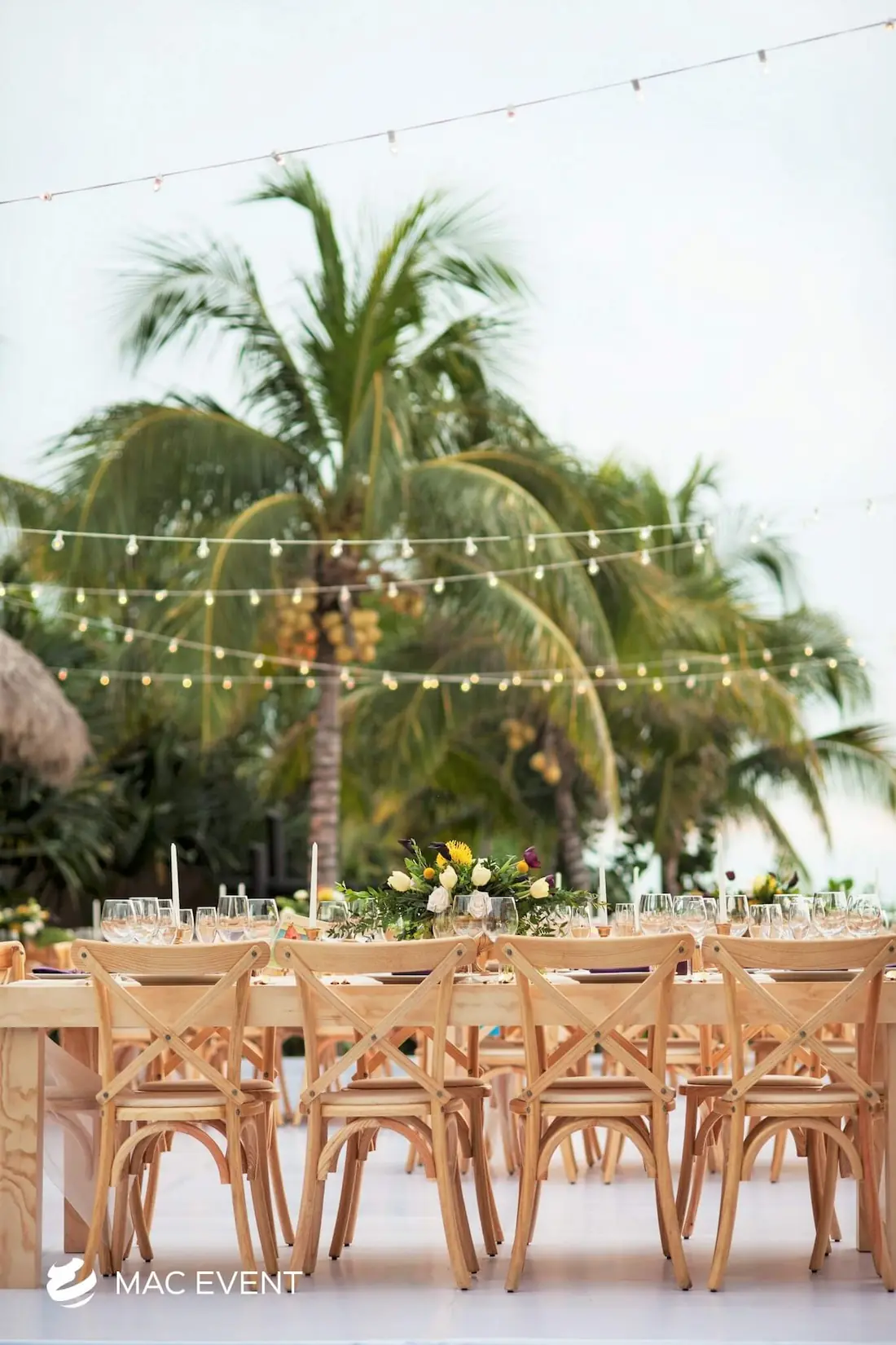 The cross back chair, also known as a x-back chair or farmhouse chair, is a timeless favorite for weddings, private parties, and elegant events in Punta Mita. Its rustic yet refined design blends perfectly with beach, garden, or boho-inspired settings, adding charm and character to any venue. Crafted from sturdy wood with a curved back for comfort, this cross back chair rental offers both beauty and practicality. Renting x-back chairs ensures a coordinated look that enhances your décor while keeping guests comfortable throughout the celebration. For a natural and sophisticated atmosphere, cross back chairs are the perfect choice for any event in Punta Mita.
